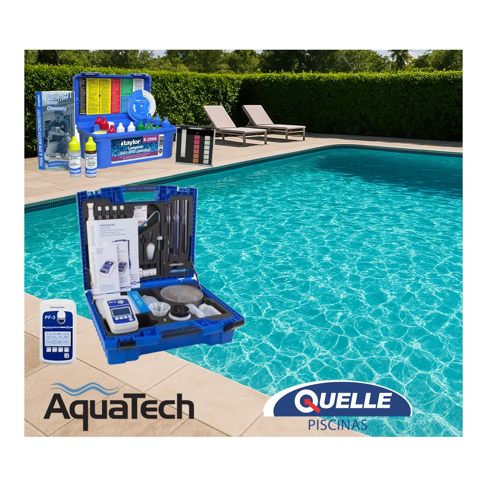 En Piscinas Quelle ofrecemos un servicio integral de Análisis del Agua de Piscina, tanto en campo como en laboratorio, utilizando tecnología de vanguardia para garantizar resultados precisos, rápidos y confiables.